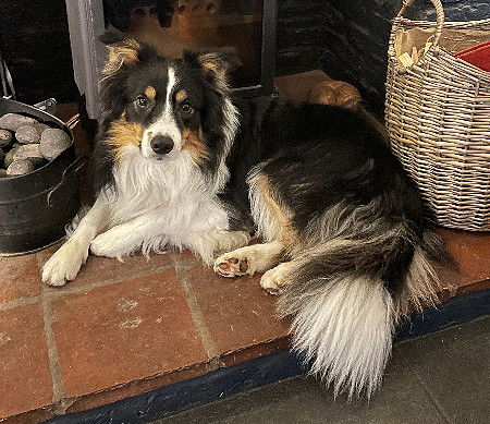 Having made the decision to retire from breeding, I had no plans to keep a pup from my final litter, although I was reminded that if there was a really 'special one', I could always think again..... I did decide it would have to be a boy or I might be tempted to carry on breeding! Frankie's last litter duly arrived and once I was sure she'd finished, with her bed changed, pups all polished & in a tangled, contented heap, I relaxed. Yes of course they were all gorgeous, they were Frankie babies after all, but I wasn't feeling that 'pull'. A little while later however, Frankie stood up, turned around & deposited a stunning black tricolour boy on top of the sleepy seven and there he was, 'tail end Charlie', puppy number 8..... and without a shadow of a doubt, mine!